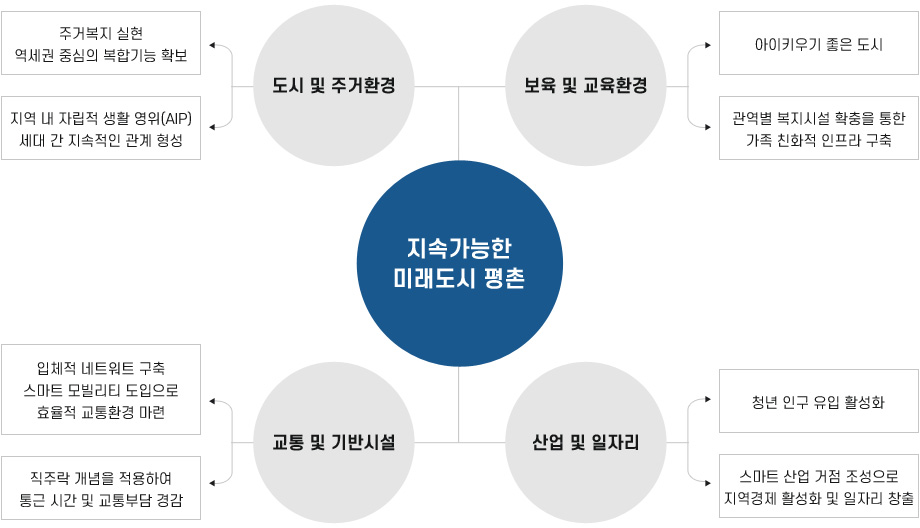 - 직주락 개념을 적용하여 통근 시간 및 교통부담 경감