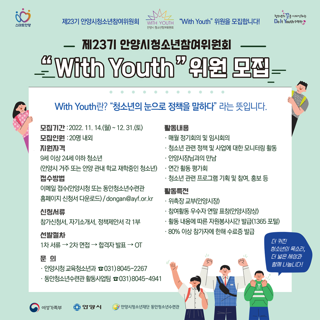 | 제23기 안양시청소년참여위원회 "With Youth" 위원 모집 | |