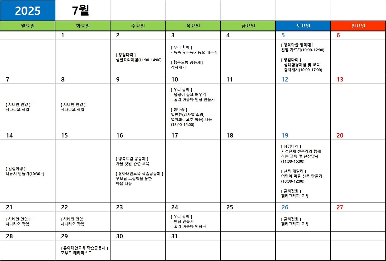 | [ 2025년 마을공동체 ] 7월 활동 계획표 | |