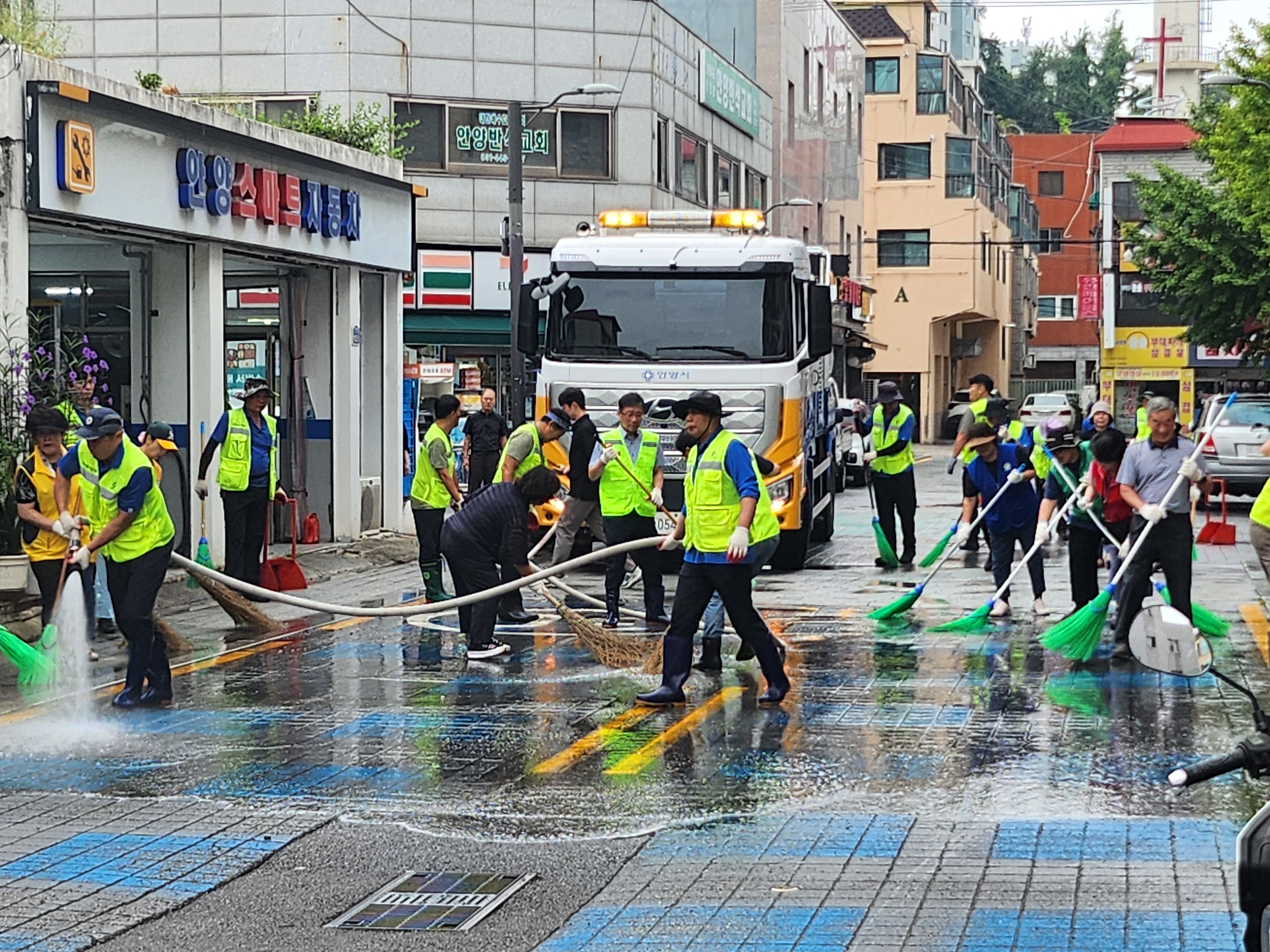 - 참여인원: 주민자치위원회 등 사회단체 및 구 환경위생과, 시 자원순환과 등 30여명 - 주요내용: 추석맞이 댕리단길 물청소 실시 |