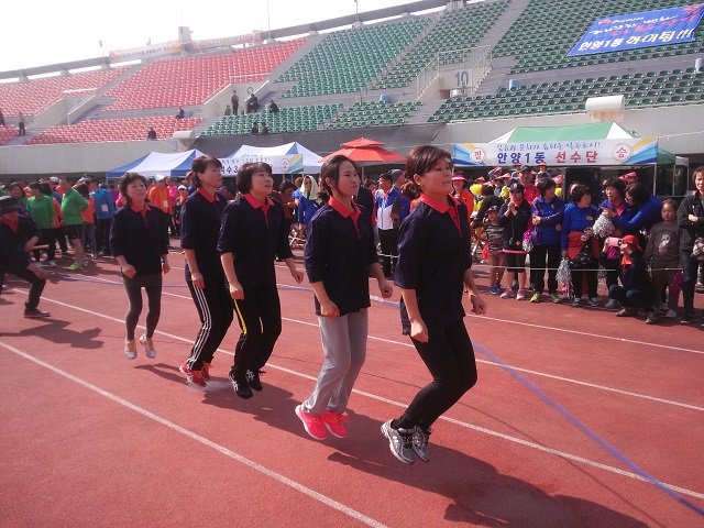 ○ 장 소 : 안양종합운동장 ○ 참여인원 : 31개동 6,000여명(선수 및 임원, 주민 등) ※ 출전종목 : 축구, 협동줄넘기, 육상, 여자승부차기, 바구니 공넣기 등 |