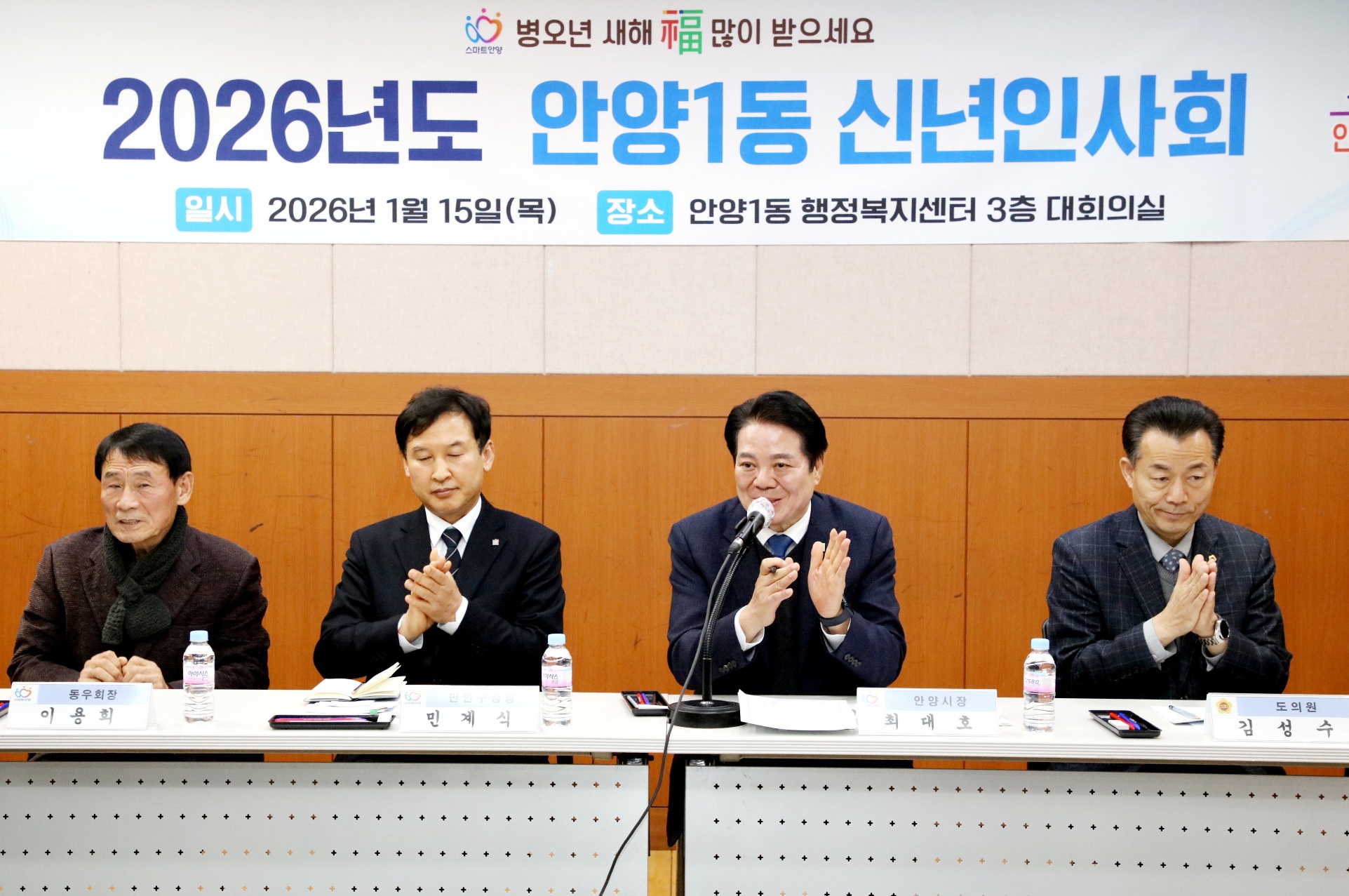 안양시(시장 최대호)는 이달 15일 안양1동을 시작으로 내달 10일까지 31개 동의 주민들과 함께하는 ‘2026년 동 신년인사회’를 개최한다고 밝혔다. 병오년 새해를 맞아 최대호 안양시장을 비롯한 간부 공무원들은 31개 동을 직접 방문하며, 노인회장・사회단체장・학교장・학부모・청년・학생 등 다양한 계층의 지역 주민들과 소통하는 시간을 가질 계획이다. 이를 통해 시정에 대한 주민 의견을 수렴하고, 각 동의 애로사항 및 건의사항 등 청취할 예정이다. 최 시장은 “‘인공지능(AI)시대, 변화와 혁신을 넘어 시민의 행복을 더 크게하는 스마트 안양’이라는 시정 운영 방향을 바탕으로 ‘미래도시 선도·민생우선·청년활력·시민행복’이라는 핵심 가치를 더욱 공고히 하여 더 큰 성장과 도약의 안양이 되도록 최선을 다하겠다”며 “주민들의 소중한 의견을 경청하고 이를 시정에 적극 반영해 나가겠다”고 말했다. 한편, 최 시장은 15일 만안구청, 16일 동안구청에서 구정보고회도 주재할 예정이다.
