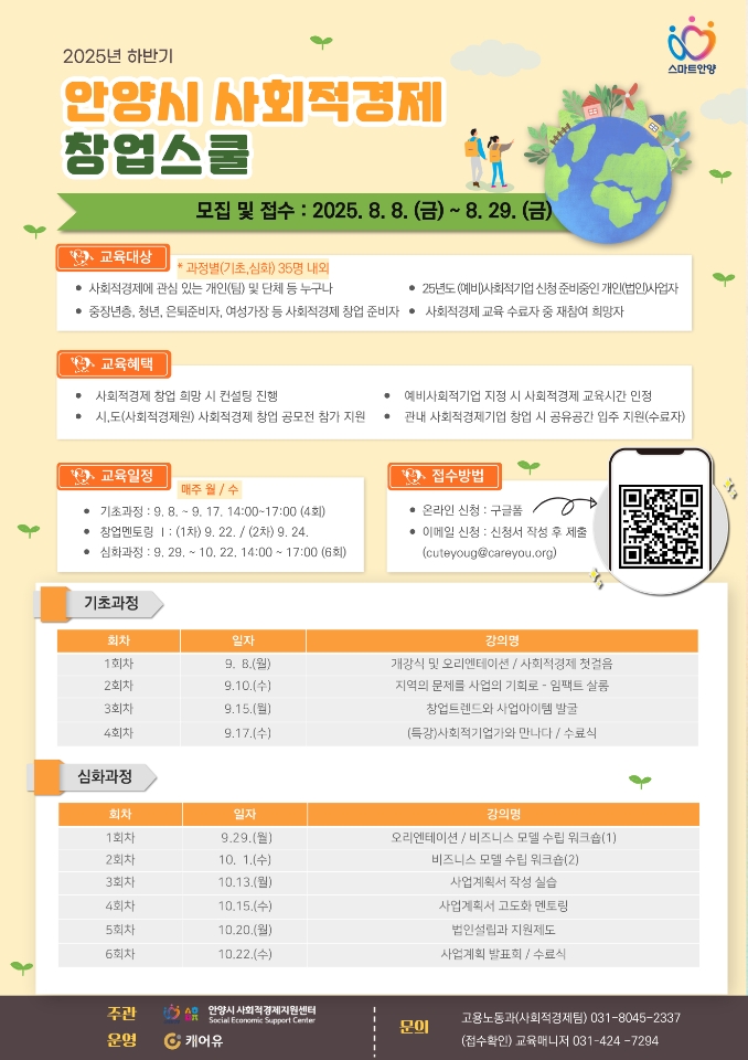 안양시, 이달 29일까지 ‘하반기 사회적경제 창업스쿨’ 교육생 모집